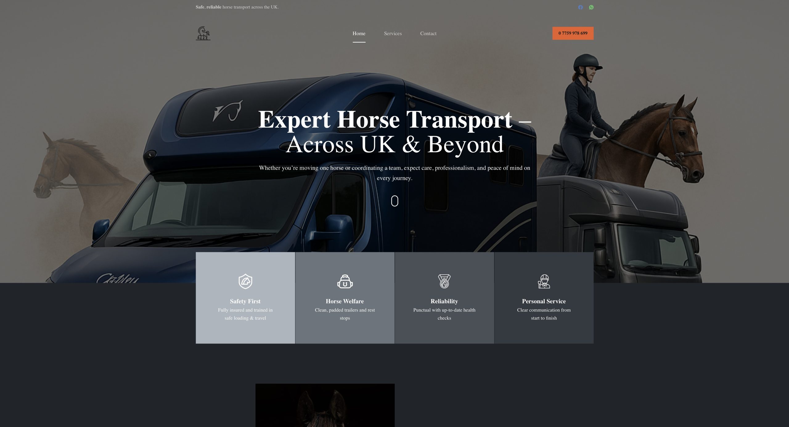 The primary goal was to build a clear, trustworthy, and conversion-focused website that positions the business as a leading equine transport provider. The website needed to communicate reliability, highlight key services, and generate consistent enquiries from horse owners, riders, and equestrian facilities.